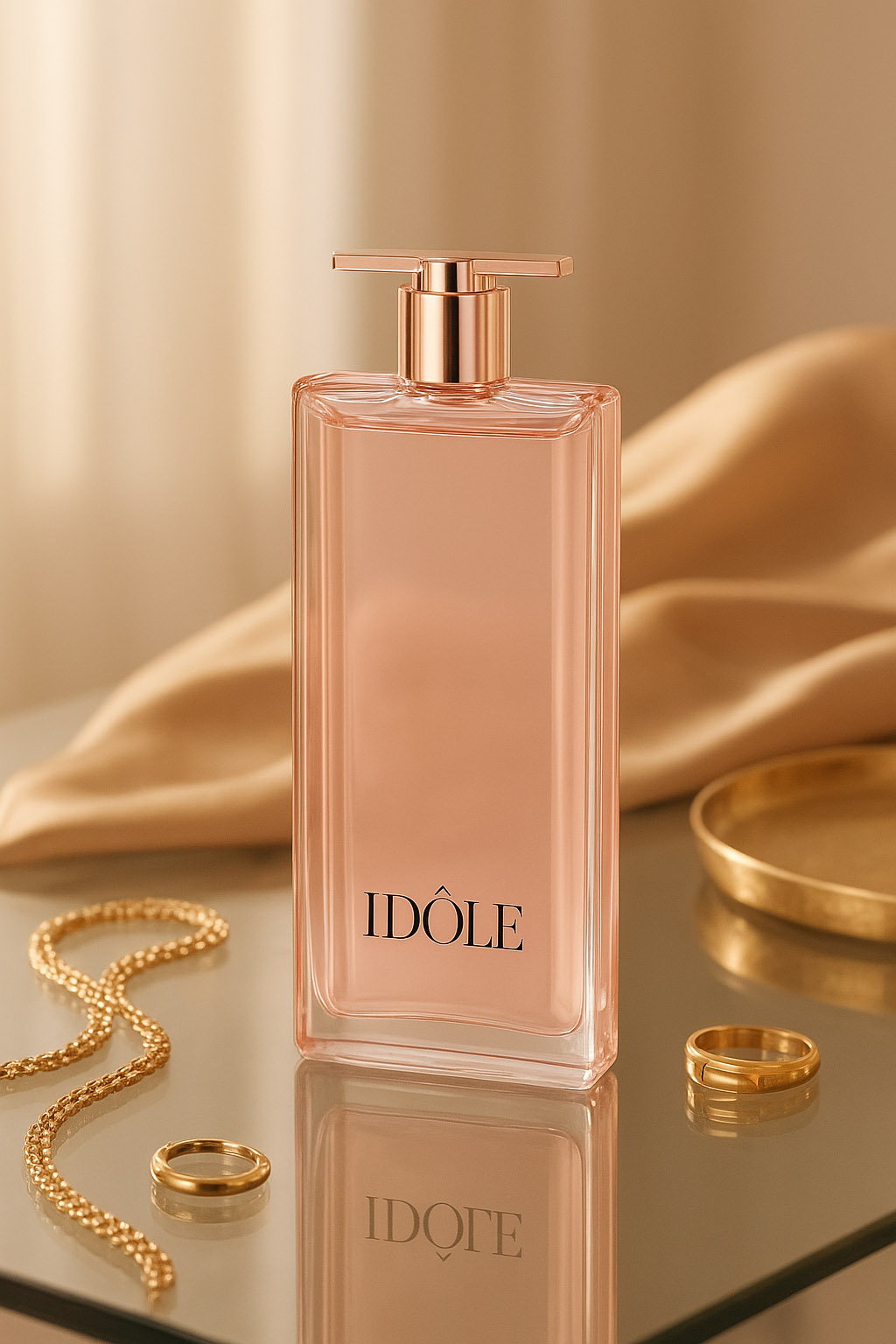 A sleek and radiant fragrance that redefines modern femininity. It opens with fresh and juicy notes of pear and bergamot, blending into a luminous floral heart of rose and jasmine. The base unveils soft white musk and creamy vanilla, leaving a clean, sensual, and empowering trail. Presented in the world’s thinnest perfume bottle, Idôle symbolizes strength, elegance, and limitless ambition.