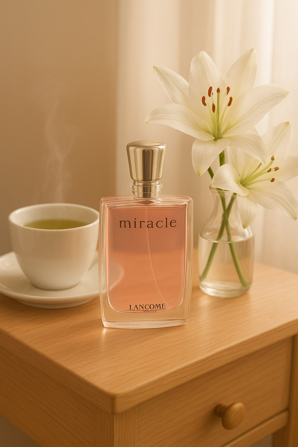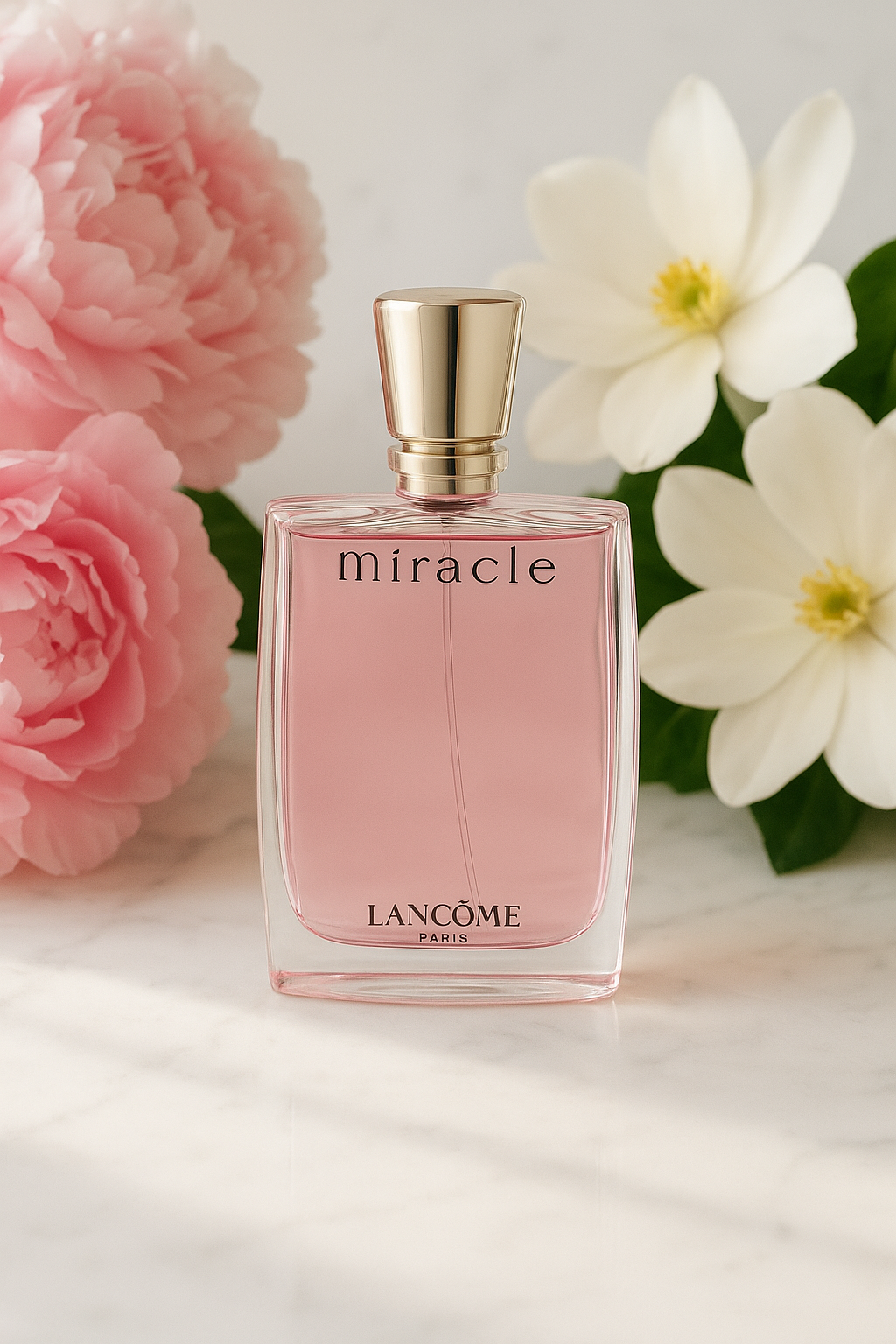 A vibrant and luminous fragrance that celebrates the beauty of everyday miracles. It opens with sparkling notes of lychee and freesia, followed by a radiant heart of magnolia, jasmine, and spicy ginger. The base reveals warm amber and musk, leaving a sensual, modern, and optimistic trail. Both fresh and captivating, Miracle embodies energy, elegance, and femininity.